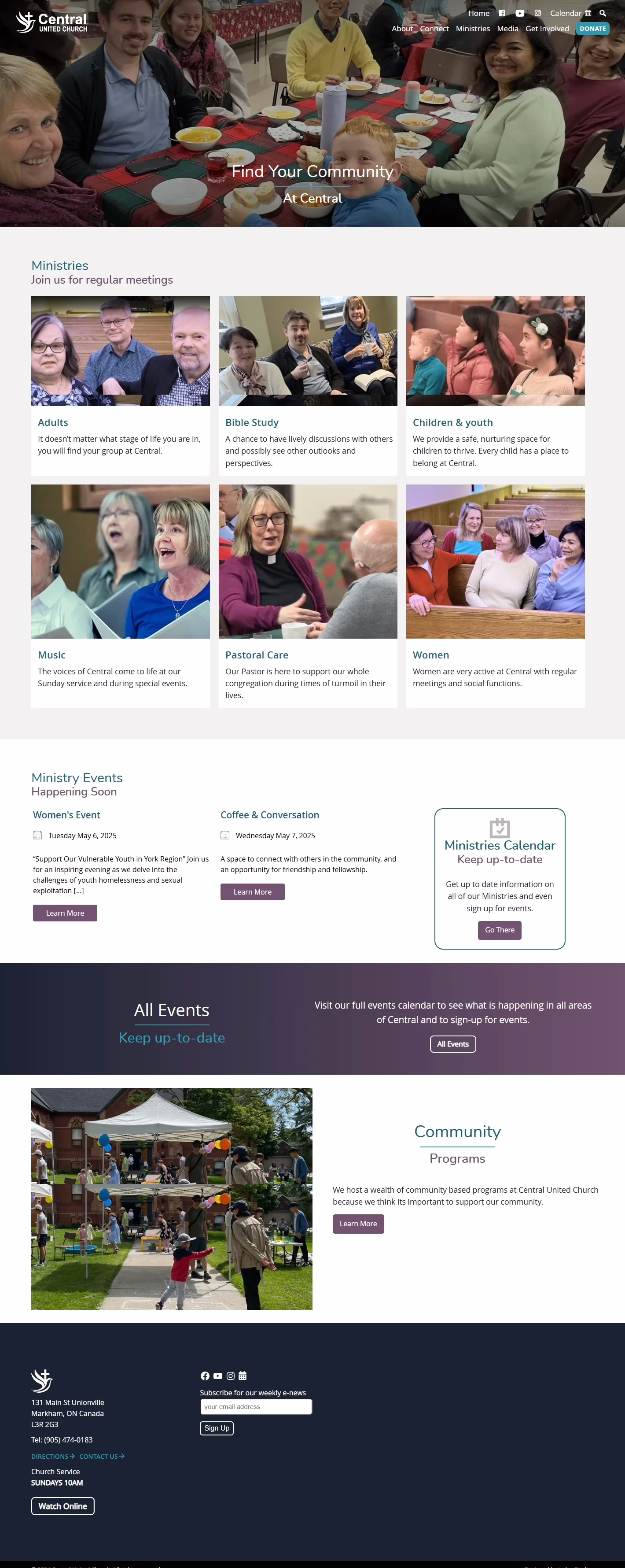 I was approached by the Central United Church in Unionville when they were looking for a new brand and a new web presence for the Church. After getting to know Central United, I realized that the Church is more than just a “church”. It is a community. So I tried to bring the community feeling into the look/feel of the website.