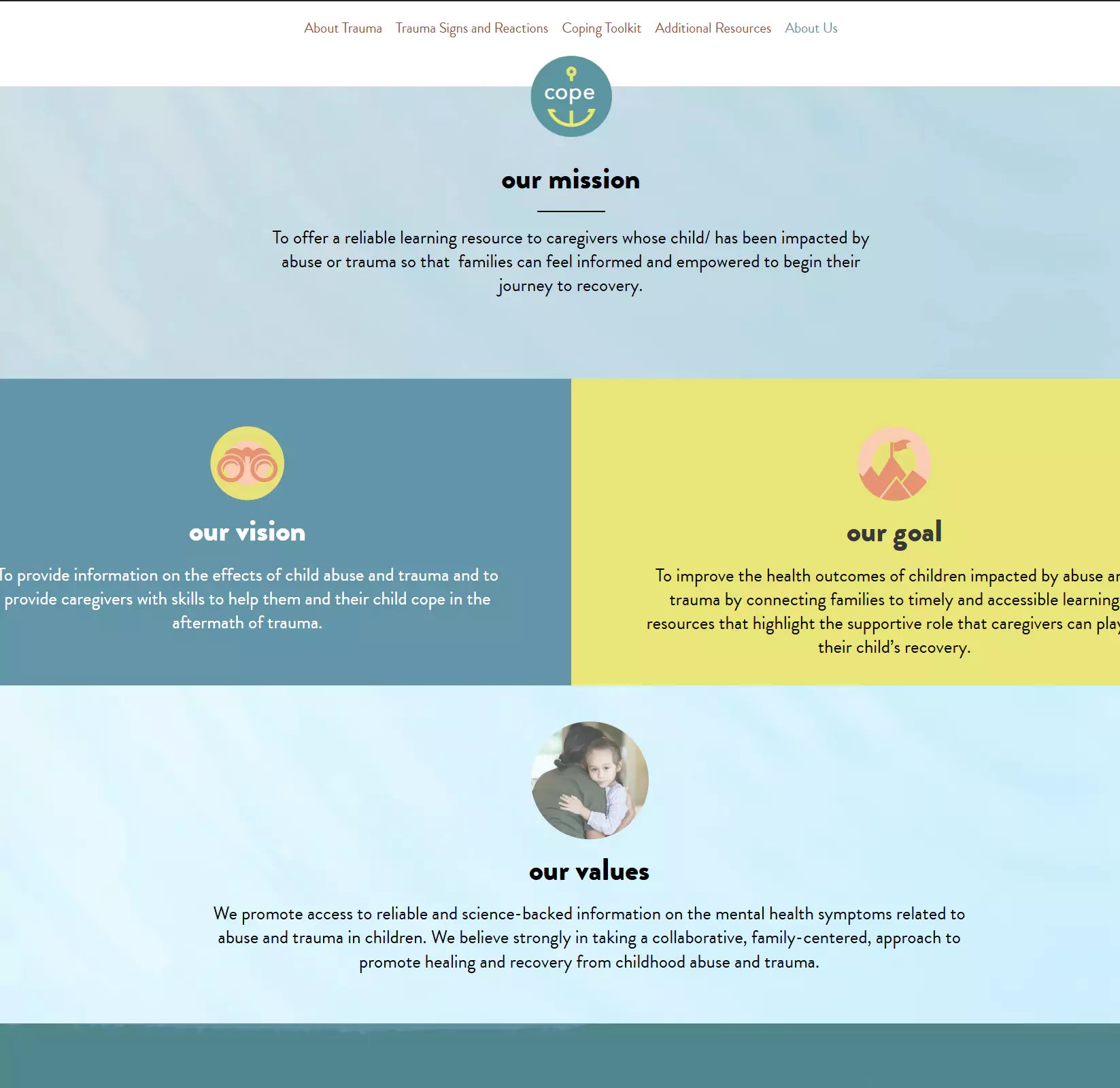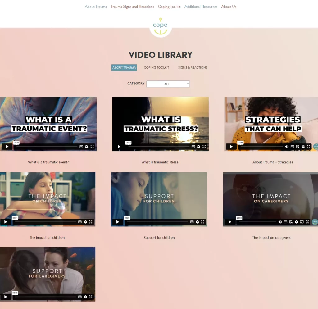 The Cope Project is an initiative for Canadian famlies that have experienced trauma. My client is a non-profit agency and the goal is to help those that have been displaced and that are waiting for government services. In the past, they were on a waiting list and had very little support. This website provides them resources and support, so they can move on with their lives.