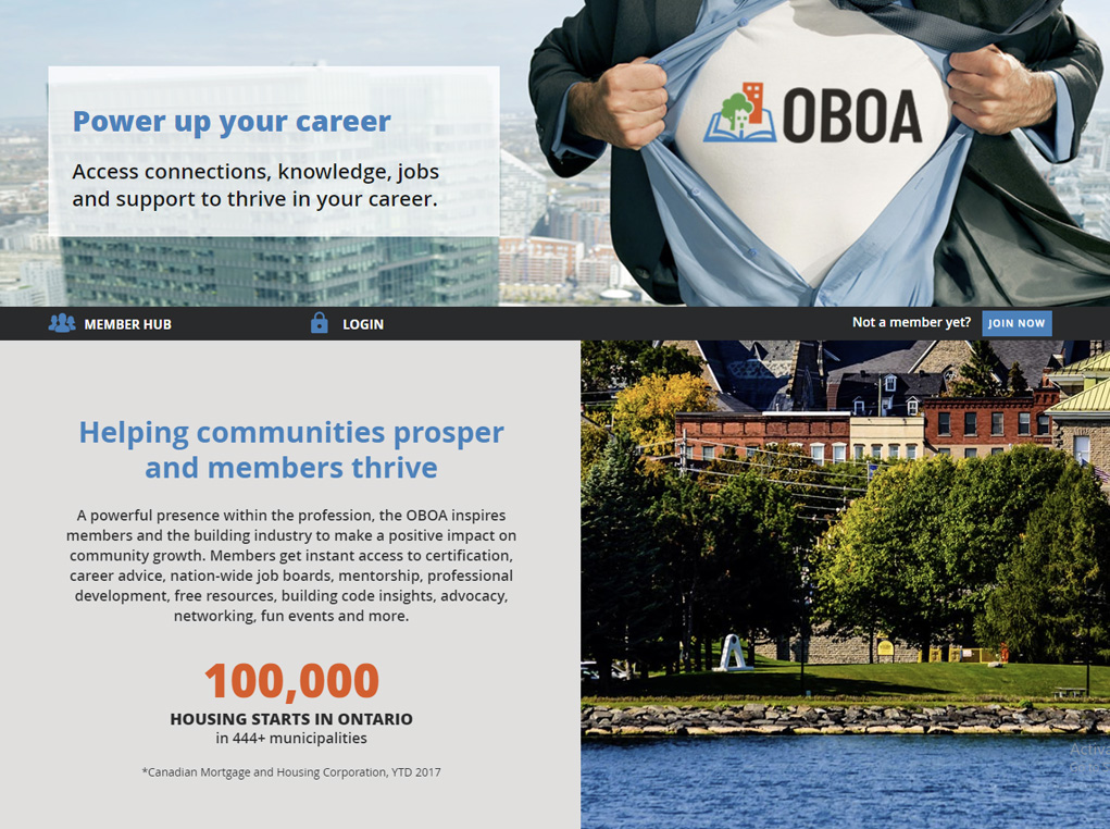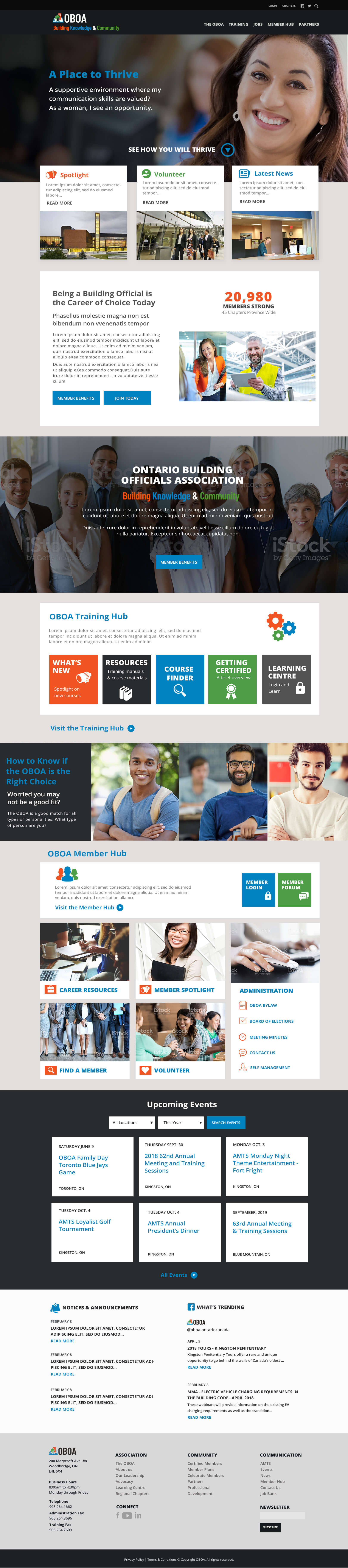 I was hired by GStrategic to come up with a look/feel for the new OBOA brand based on their new logo. The Client wanted a dark background at the top of the site but at the same time, they wanted a corporate, bright look/feel. I used the colours of the logo and integrated them into colour blocks. I also used bright, bold photography throughout the website.