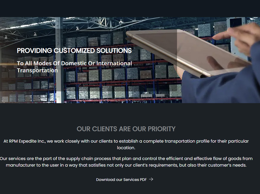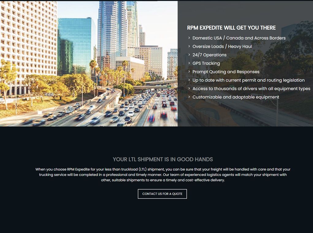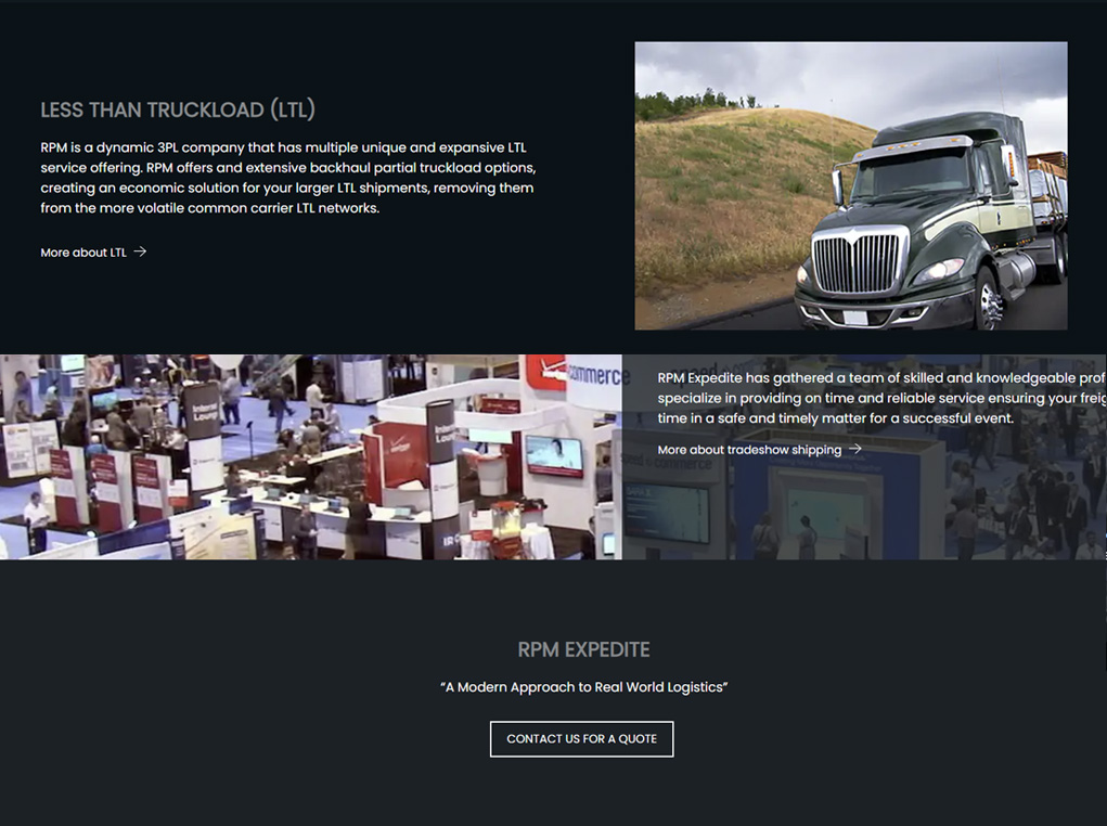 I was hired by RPM Expedite to create a modern looking, reponsive website. The company is a technology company. They provide logistics in the transportation field. I used darker colours and technical fonts to connect with the technological aspect of their business. I wrote all of the copy for this website and designed everything you see other than the company logo. I also set up the hosting for this company and maintain this website for the client.